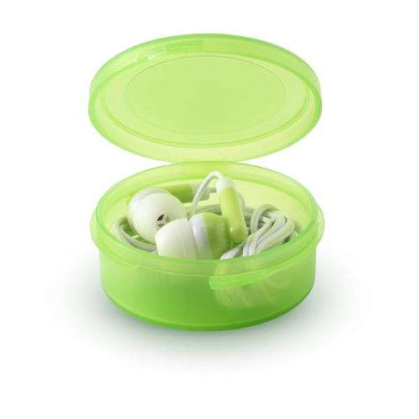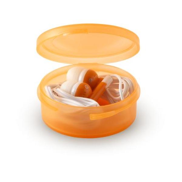 Diese In-Ear-Ohrhörer werden in einer robusten und farbenfrohen wiederverwendbaren Box geliefert.
